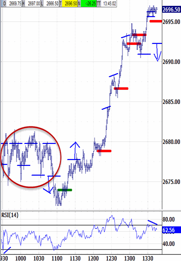 But we knew its ultimate resolution would be substantial. In fact, dipping to test the 2674.00 bias-up signal down to 2672.00 during the bias-up environment created a slingshot effect that resumed the overnight rally.