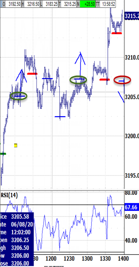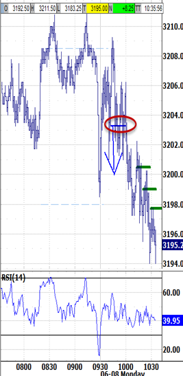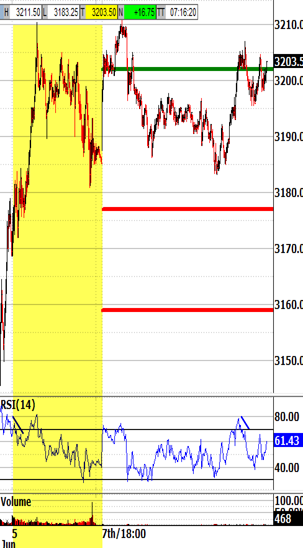 Exiting the open above 3208.00 would be likely to trigger the 3202.00 bias-up signal.