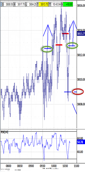 and Isolation setups never played. Gapping up opened at the 3810.25 bias-up signal, and ranged choppily sideways through the first 15 minutes.