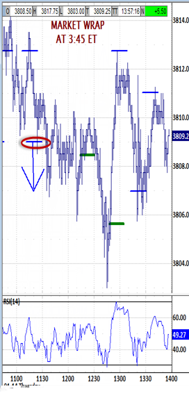 afternoon bias window to its 3813.50 high. The balance of the session backed-and-filled down to 3801.00.