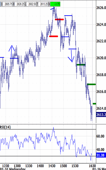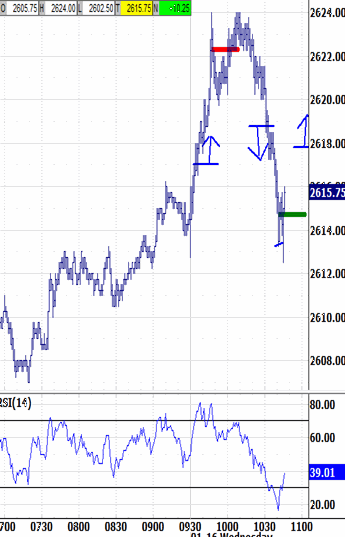 Then, meet in the chaRTroom here by 9:15 ET for updates and Q&A That fresh high behaved as if it were fulfilling buying pressure, as the last 60-90 minutes trended back down to 2615.25 into the cash session close. Futures extended down to 2612.50.Day Trading Pre-Open Plan - 7:16 AM