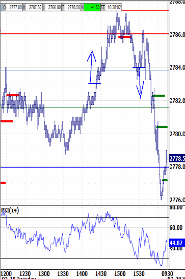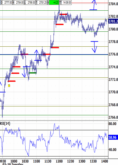 Tuesday's open gapped down from Friday's 2776.00-2777.00 close, but only to test its 2766.50 last relative low.