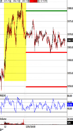 Exiting the open above 3366.00 would be unlikely to trigger the 3363.00 bias-down signal. Exiting the open under 3374.00 would be unlikely to trigger the 3379.00 bias-up signal.