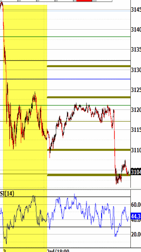 Monday's 3114.50 close had extended down immediately after the Globex to 3108.00, and