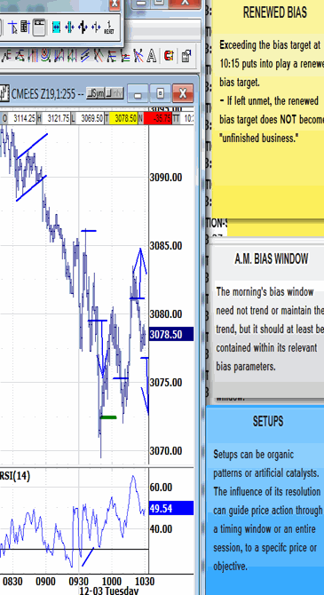 1. At 10:15, trading above the bias-up signal or under the bias-down signal would put into play a test of its bias-up or bias-down target.
