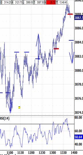 Gapping open at 3084.75 soon slid to 3078.00-3080.00, which stopped the selling instantly. Its reaction up tested 3086.00 before retracing entirely, ultimately forming a Descending Triangle.
