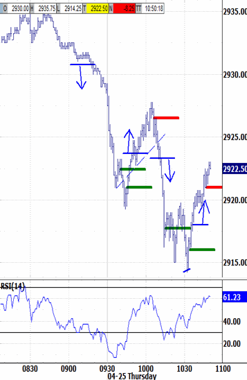 Rallying almost straight up to noon touched 2935.00. That's where the pre-open slide had originated, having held the last overnight bounce. And so far, 2935.00 has held this morning's bounce, too.