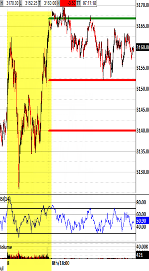 Exiting the open above 3157.50 would be unlikely to trigger the 3152.00 bias-down signal.