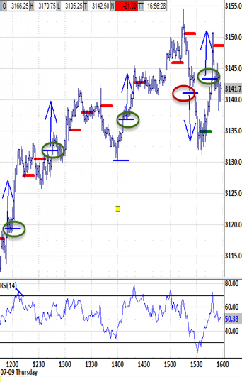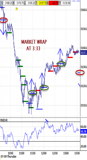 exceeding the pre-10:15 high, was reversed sharply to test the morning's bias-down signal down to 3126.00. Its support launched a recovery through the noon hour back up to the morning's premature broken 3148.50 bias-up signal as required. The final hour rallied back up to the morning's high to 3164.00.