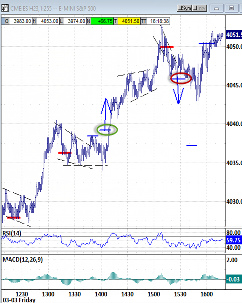 New price points : Hovering there broke higher as the bias window began lapsing since Fri morning's bias tends to persist through the noon hour. The P.M. bias window entry was greeted at its 4141 bias-up target.