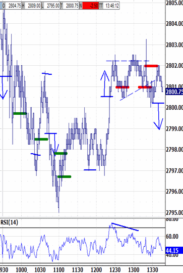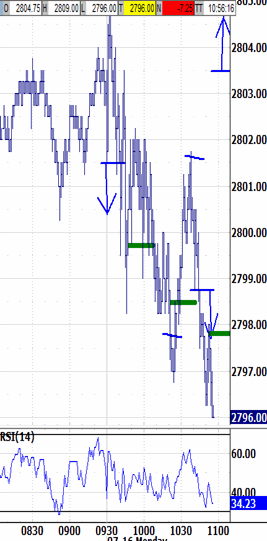 And breaking under it was recovered by 10:30 to maintain the no-bias environment. That no-bias environment didn't prevent a fresh low at 2795.00, but it warned of the fresh low's recovery, at least back up to 2797.75.