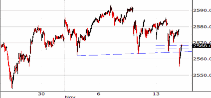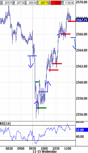 2566.00 is being retested now into the afternoon bias environment. This afternoon's 2565.25 bias-down signal was barely attacked, and not triggered.