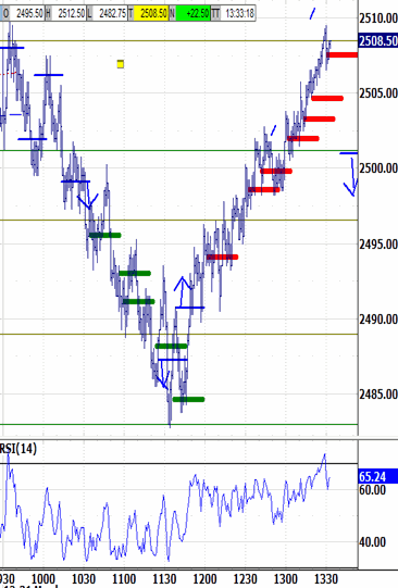 I had noted this morning that perhaps the most bullish development was probing under the 2495.50 bias-up signal when it was too late for sellers to gain traction for their effort.