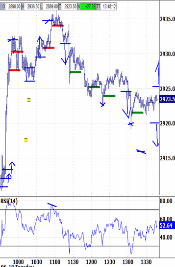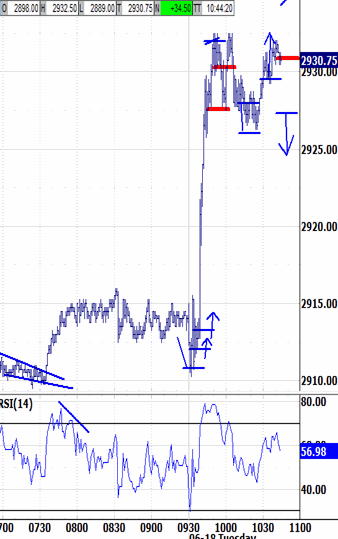 Two more thrusts followed this morning's Market Tour and took price back to last Tuesday's 2915.75.