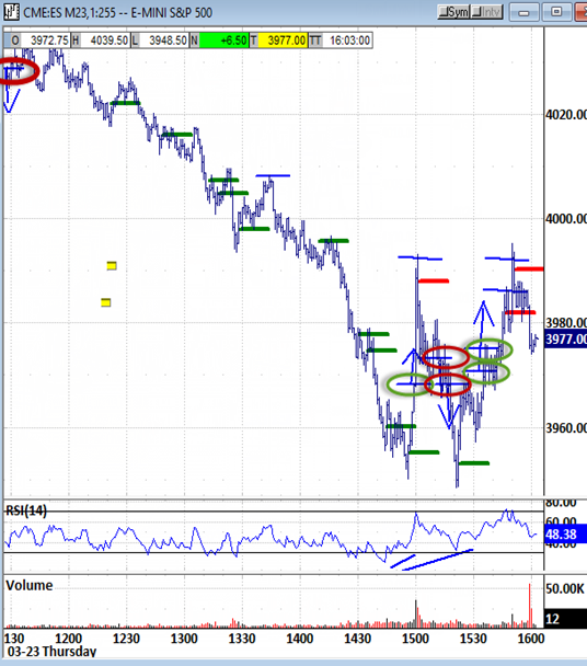 Today's price points : Trending up through midnight and Europe's opens to 4001 was consolidated widely until trending back up through the open. Initial corrective targets were exceeded to attack 4040 at the A.M. bias window's high. Trending back down through the afternoon retraced it all on the way down to test and retest 3949, reacting up to 3992-3995.