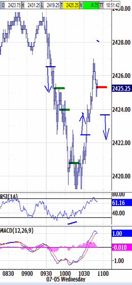 But 2428.00 gave way during the first 3 minutes. And soon Monday morning's 2418.50 low was being attacked to within 3 ticks.