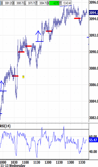 3088.50. An offsetting test of its 3095.50 bias-up signal was put into play. So, a 4-point dip attacking 3084.00 after 10:30 was likely not only to hold but also to recover, offering a highly-reliable long-entry.