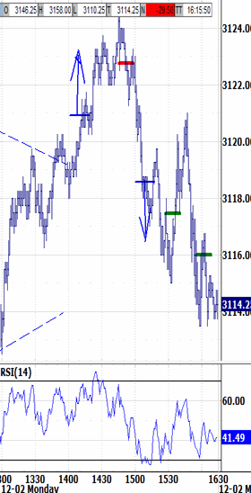 The opening drop extended through the bias environment to its 3110.25 low. Bouncing 11