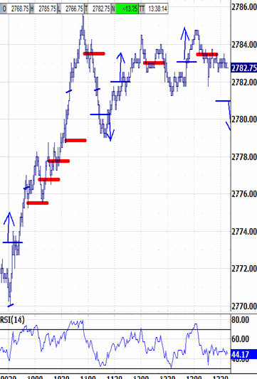 Back under 2775.00 would start to signal at least a pullback underway. And maybe only a pullback. A trend reversal would be possible, but less likely. It would be well-rewarded, too, eventually targeting 2730.75. But this being a Friday, the morning's bias signal tends to persist through the noon hour.