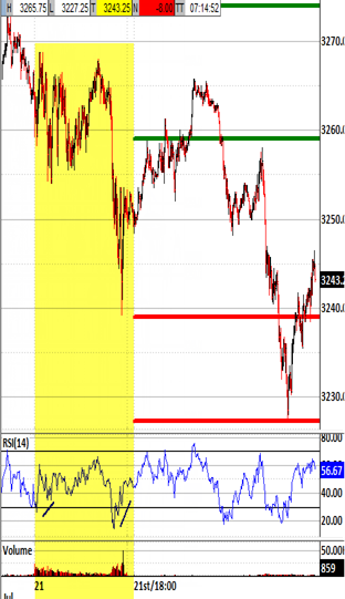 Exiting the open under 3236.25 would be likely to trigger the 3239.00 bias-down signal.