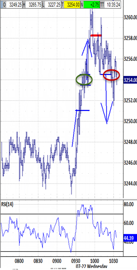 Rallying through the first half-hour from 3246.00-3261.00 was retraced entirely down to 3244.50. Its