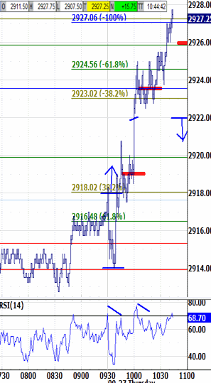 Then, meet in the chaRTroom here by 9:15 ET for updates and Q&A This morning's 2922.00 bias-up target was exceeded through 10:15 to renew the bias-up signal. The 2927.00 renewed bias-up target was just touched, and is being probed by several ticks. It helps to begin from a relevant level, too, like from recovering 2914.00 and 2919.00 through this morning's open. Even that only produces a position of strength, which makes another drop likely to recover... for example, from retesting 2907.50.Pre-Open Market Bias - 7:36 AM