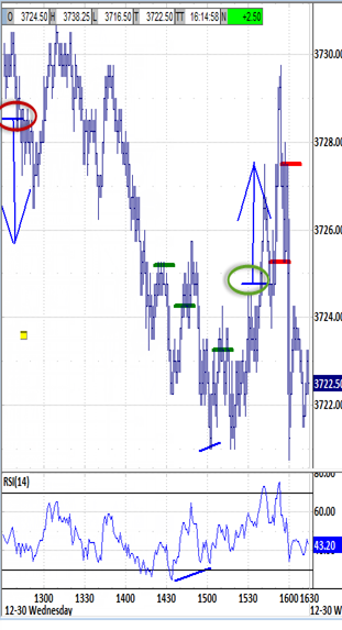 through the entire bias environment was not strength. So the noon hour broke lower to fulfill the morning's 3715.00 objective. The balance of the session ranged sideways through the 3721.00 cash session close.