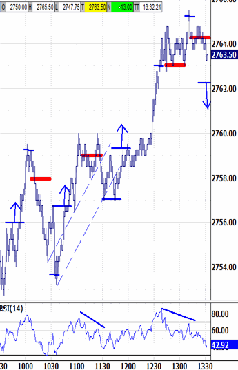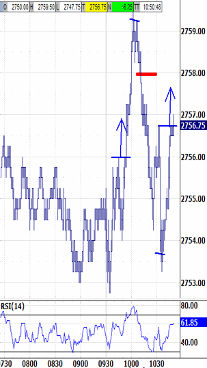 The reaction from the open's 2759.50 high had reacted down to 2753.25. Being pessimistically short of actually touching last week's 2560.00 high,