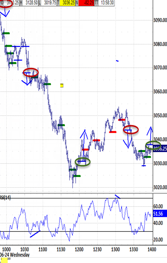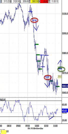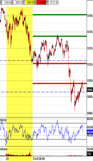 Exiting the open under 3090.75 would be likely also to exceed the 3098.25 bias-down target and renew the bias-down signal.