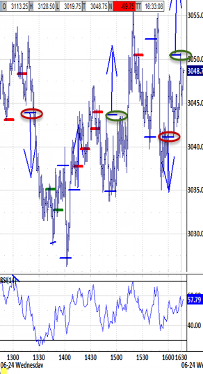1. At 10:15, trading above the bias-up signal or under the bias-down signal would put into play a test of its bias-up or bias-down target.