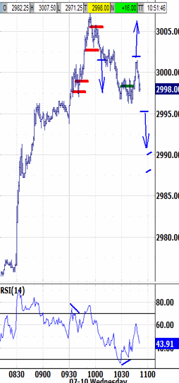 This morning's 2976.50 bias-down signal was being tested, and the headline reaction surged up to 2991.00. The reaction extended to 2996.50 pre-open, and then up to 3007.50 post-open.