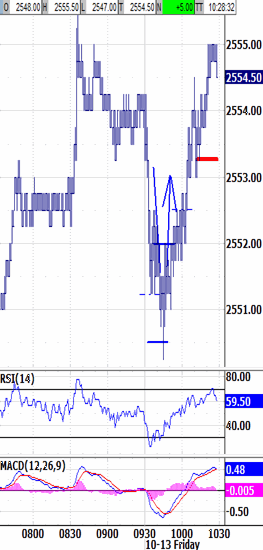 Actually, yesterday afternoon's slide had been rejected already by closing back above the morning's 2547.25 low. That robbed the downleg's sellers of their traction.
