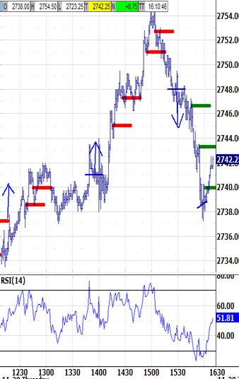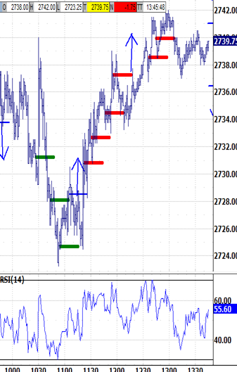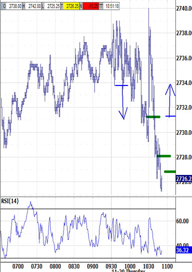This morning's dip to at least test the 2727.75 bias-down target ultimately probed it 4-1/2 points lower.