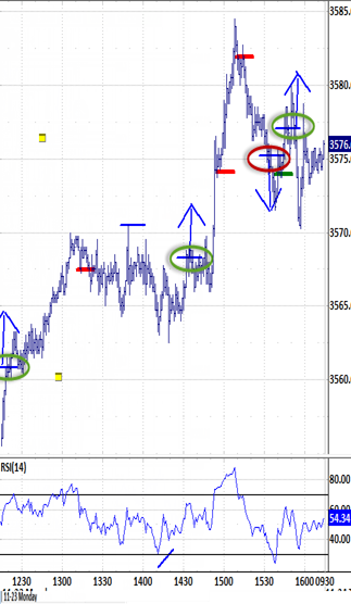 Exiting the open above 3570.50 would be likely to trigger the 3566.00 bias-up signal.