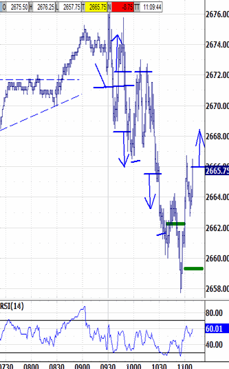 This morning's premise was to probe yesterday's highs above 2677.00 because its rally had gained traction, and its late dip had injected pessimism.