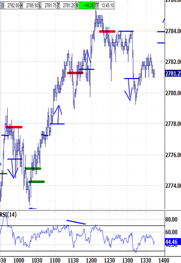 MON afternoon signal (triggered at 1:20 ET) SPX ES Bias-up: above 2781.75 2784.00 ...would target 2787.50 2789.75 Bias-down: under 2773.25 2775.75 ...would target 2767.00 2769.50 Signal status: NO-BIAS, TESTED BIAS-UP SIGNAL FAQ Flowcharts: Bias-UP // Bias-DN INTRO VIDEOS #1 and #2 1. At 1:20, trading above the bias-up signal or under the bias-down signal would put into play a test of its bias-up or bias-down target. 2. Not triggering either bias signal at 1:20 would be "no-bias," and the bias signals should define the bias environment's range. -- A test of the opposite bias signal would be targeted if one bias signal was tested before triggering no-bias. 3. Touching the bias signal within 3 minutes either way of 1:20 would invoke a grace period through 1:30 to trigger a late signal. -- "Late" signals don't require testing the opposite bias signal, but it's still likely. 4. Still testing the bias signal at 1:30 after invoking the grace period would trigger "noN-bias," with no bias influence.