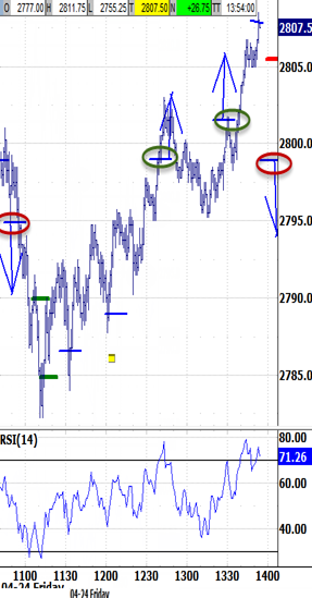 Exiting the open above 2808.00 would be likely to trigger the 2802.50 bias-up signal.