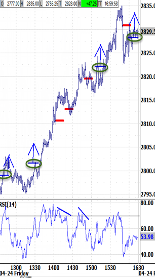 1. At 10:15, trading above the bias-up signal or under the bias-down signal would put into play a test of its bias-up or bias-down target.