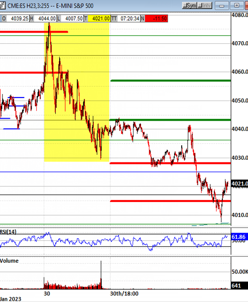 Their influences : Mon's intraday timing windows had isolated probes under relevant support of 4040-4044, until closing under them all. This opened the door to 3987 unless Tue's open gaps up (not indicated) or a timing window lapses back above 4040-4044... Month-end portfolio window dressing tends to inject volatility into the last afternoon of the month... Not a requirement, but a vulnerability, that often an already recovered overnight drop will be duplicated to some degree intraday.